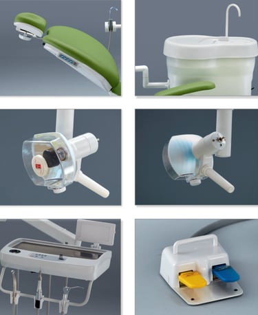 Body Contoured Electrically operated dental chair equipped with a state-of-the-art microprocessor-based chair control system.