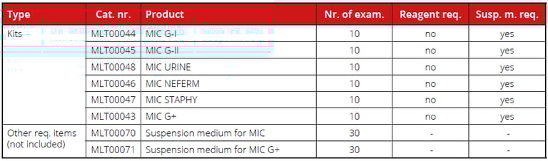 Antibiotic susceptibility testing kits MIKROLATEST MIC® offer a precise and quantitative determination of the minimum inhibitory concentration of antimicrobial agents (antibiotics) that inhibit visible growth of bacteria. This microdilution method is based on rehydration of antibiotics by suspension media in individual wells. One kit contains 10 determinations, each consisting of 12 antibiotics in 8 concentrations and a growth control. Thanks to a robust water-free format, it is possible to store the kits in 2-25°C with an extended shelf life of 12 months minimum.